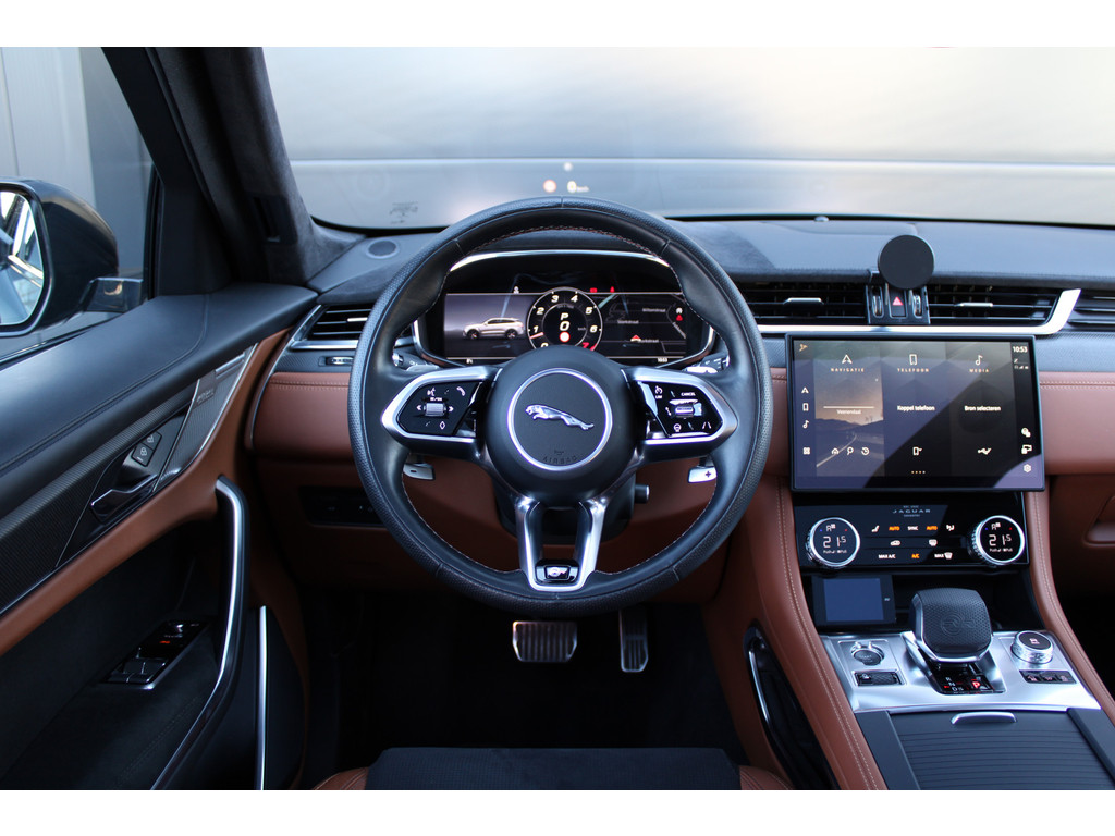 Met een auto als deze Jaguar F-PACE komt u absoluut goed voor de dag. Deze auto uit 2021 heeft 55994 kilometer gereden. Met een achtcilinder benzinemotor en een automatische transmissie beschikt deze Jaguar over uitstekende prestaties. Aan gemak én ruimte is uitstekend gedacht: een elektrisch bediend glazen panorama dak en een elektrisch bedienbare achterklep. En dan krijgt u het mooie lederen interieur er ook nog eens bij! U past de stoelen moeiteloos aan, ze zijn elektrisch in te stellen en hebben bovendien een geheugen. Waarom zou je alleen voorin behaaglijk mogen zitten? Daarom is er óók een verwarmde achterbank. Tot de voorzieningen van deze auto behoren 22 inch lichtmetalen velgen, LED koplampen, sportonderstel, adaptief dempingsysteem, elektrisch inklapbare buitenspiegels en donker getint glas achter.