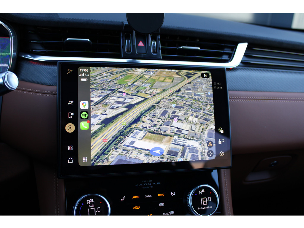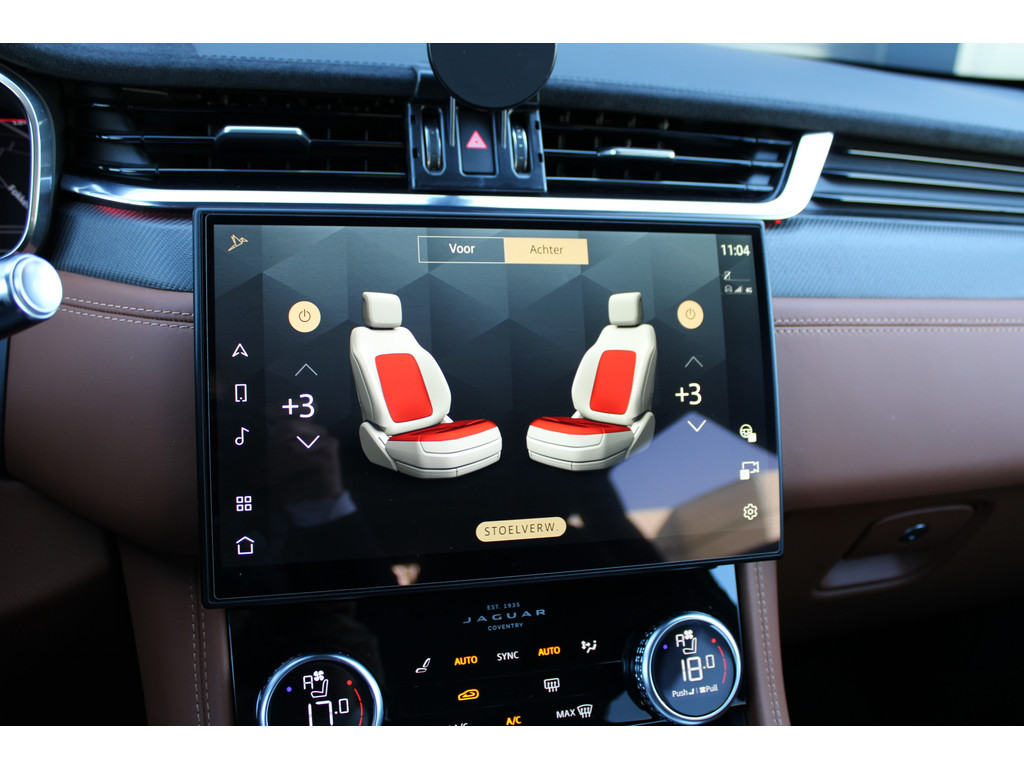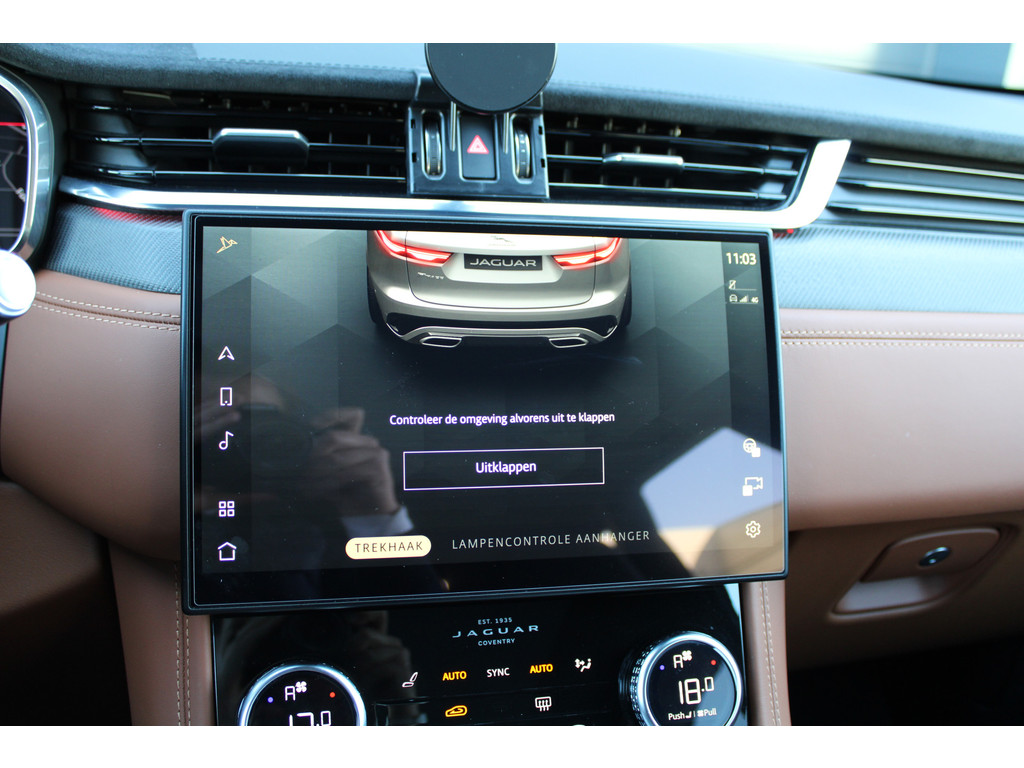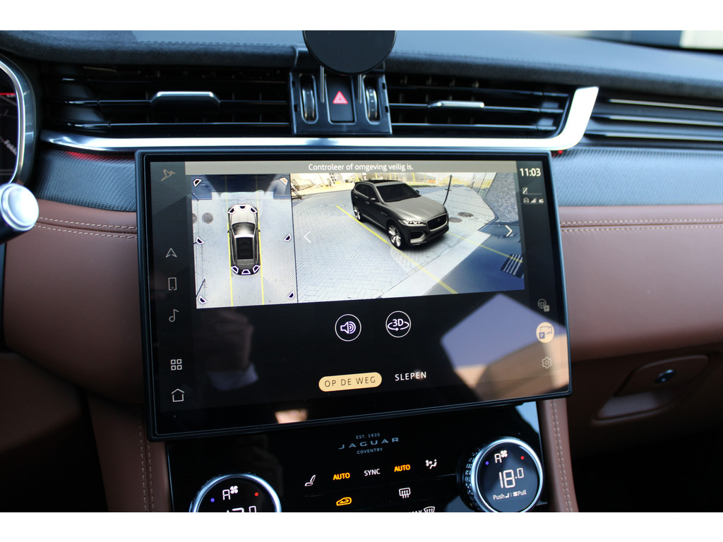Uw rit wordt comfortabel en veilig gemaakt door het digitale dashboard dat alles projecteert wat u wenst in de digitale wereld van mobiliteit. Of u nu achteruit rijdt, parkeert of een smalle straat inslaat, de 360 graden camera op deze auto, mogelijk gemaakt door vier camera's, biedt een perfect beeld van uw omgeving. Adaptive cruise control is een comfortabele en veilige optie. Het systeem reguleert de snelheid en houdt automatisch afstand tot uw voorligger. De conditie van deze auto is 24/7 inzichtelijk dankzij Connected Services. Voor een krachtige en natuurlijke geluidsweergave zorgt het high performance audiosysteem. Ook is de Jaguar uitgerust met: full map navigatiesysteem, WIFI-hotspot, achteropkomend verkeer waarschuwing, electronic climate control, sportstuur met schakelpaddels en DAB ontvangst.