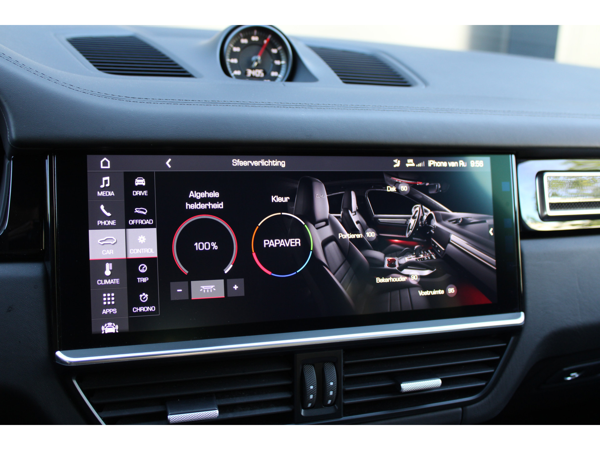 Dankzij de 360 graden camera kunt u zowel de voor- als achterzijde van het voertuig in het oog houden, wat bijdraagt aan een veiligere rijervaring. Pech of storing, altijd vervelend. Maar met Connected Services weet u direct wat eraan scheelt. En dus ook wat er moet gebeuren. Uw favoriete muziek klinkt beter dan ooit met het ingebouwde high performance audiosysteem. Electronic climate control verwarmt of koelt het interieur met een druk op de knop. Parkeersensoren helpen u tijdens het in- en uitparkeren. Ook is de Porsche uitgerust met: dashboard met spraakbediening, navigatiesysteem met harde schijf, WIFI-hotspot, sportstuur met schakelpaddels, DAB ontvangst en regensensor.