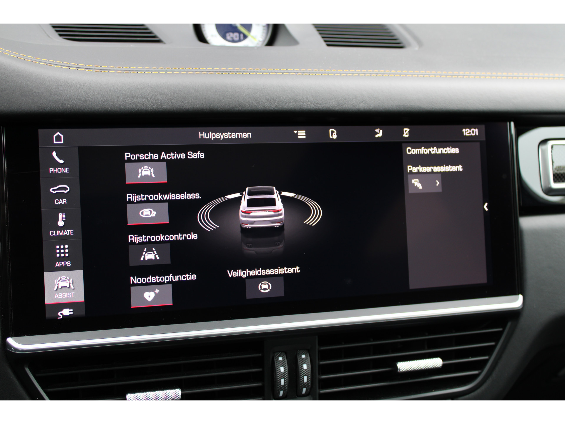 Als bestuurder van deze Porsche bent u nooit alleen. U wordt onderweg bijgestaan door technologische hulpmiddelen die samen met u de weg in de gaten houden. Als het nodig is, grijpen ze zelfs in, door te remmen of bij te sturen. In het instrumentarium laat de verkeersborddetectie de actuele verkeersborden zien. Mindert een voorligger onverwachts te veel vaart, dan komt de forward collision warning in actie en waarschuwt meteen. De veiligheid van deze auto wordt verder verhoogd door dodehoekdetectie, hill hold functie, brake assist en bandenspanningcontrolesysteem.
