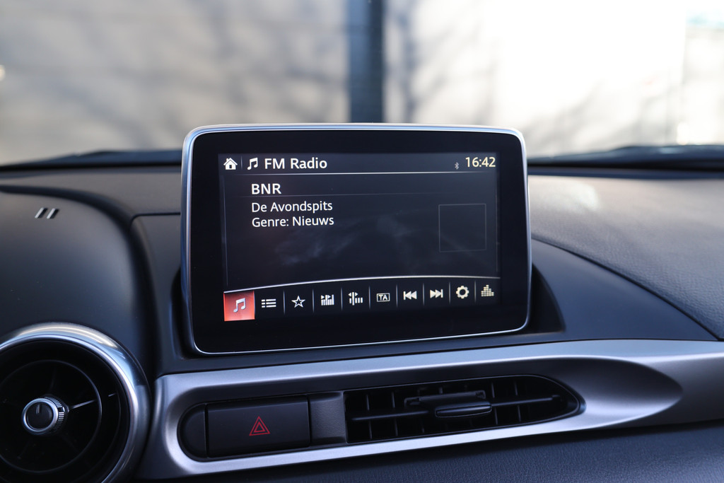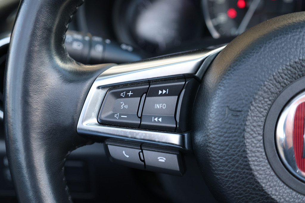 Het navigatiesysteem loodst u snel naar uw reisdoel. Deze Fiat 124 Spider is voorzien van sensoren aan de achterzijde om een achteropkomend verkeer waarschuwing te geven als de afstand tussen u en een achterligger te klein is. Laat de kids maar gamen en appen: de ingebouwde WIFI-hotspot kan het makkelijk aan. Switchen van radiozender of het geluid dempen - het gaat gemakkelijk en veilig dankzij de audiobediening op het stuur. Voor een storingvrije radio-ontvangst zorgt de ingebouwde DAB-ontvanger. Extra opties op deze auto zijn: WIFI-hotspot, cruise control, airconditioning, lederen stuur, centrale deurvergrendeling met afstandsbediening en lederen versnellingspook.