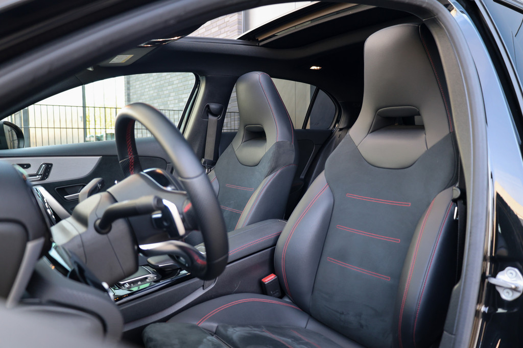 Van een auto mag u het nodige verwachten, vinden ze bij Mercedes. Topkwaliteit in alle opzichten, vandaar de slogan 'The best or nothing'. Hier ziet u een perfect voorbeeld. Als u het over uitstraling hebt, dan kunt u niet om het effect van de AMG-styling heen. Onder de motorkap ligt een zuinige viercilinder benzinemotor. Neem plaats op de comfortabele stoelen. Dankzij de elektrische bediening en het geheugen is het eenvoudig om hierin de beste zitpositie te vinden. Een heerlijk zonnetje, of indrukwekkende wolkenpartijen? Bekijk ze onbelemmerd door het elektrisch bediende glazen panoramadak. De verlichting van de koplampen geeft het gevoel dat het altijd dag is. De slimme matrix LED-technologie past zich aan bij tegenliggers, zonder verlies van lichtkwaliteit. U wordt in deze auto ook getrakteerd op 17 inch lichtmetalen velgen, AMG-styling, zwarte hemelbekleding, donker getint glas achter, in delen neerklapbare achterbank en verstelbare lendensteunen.