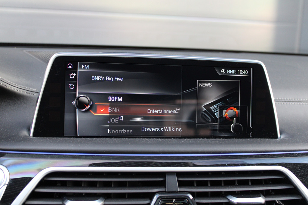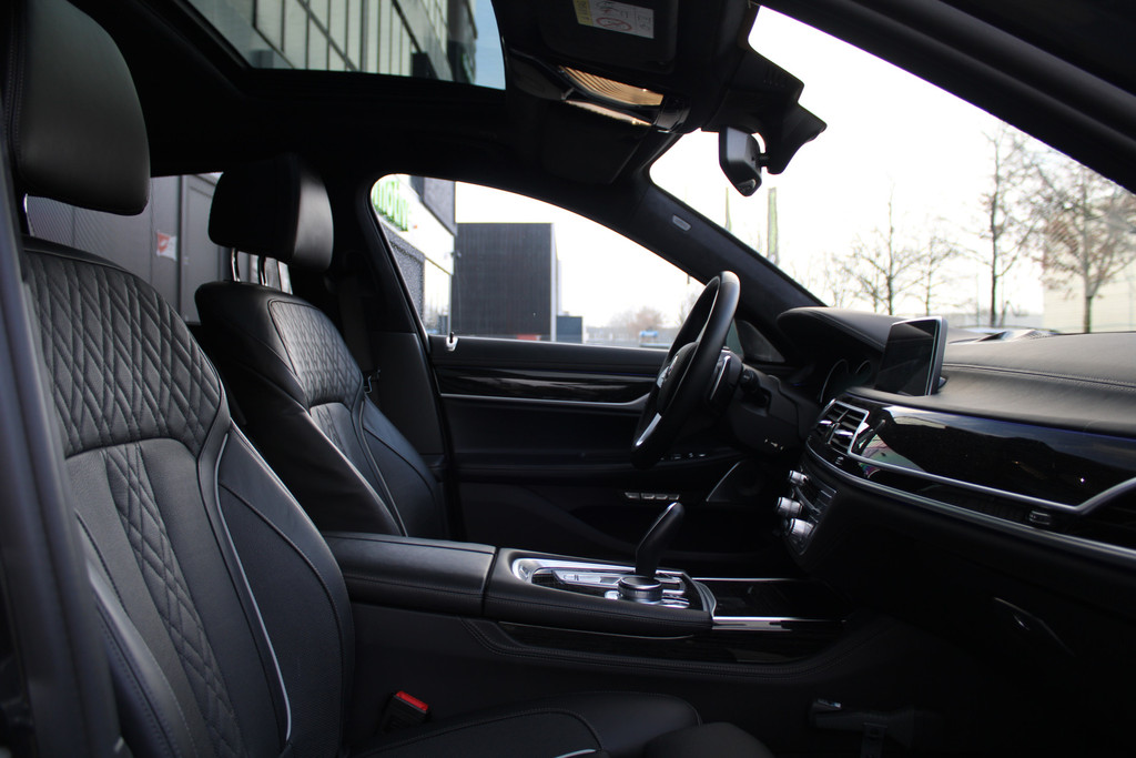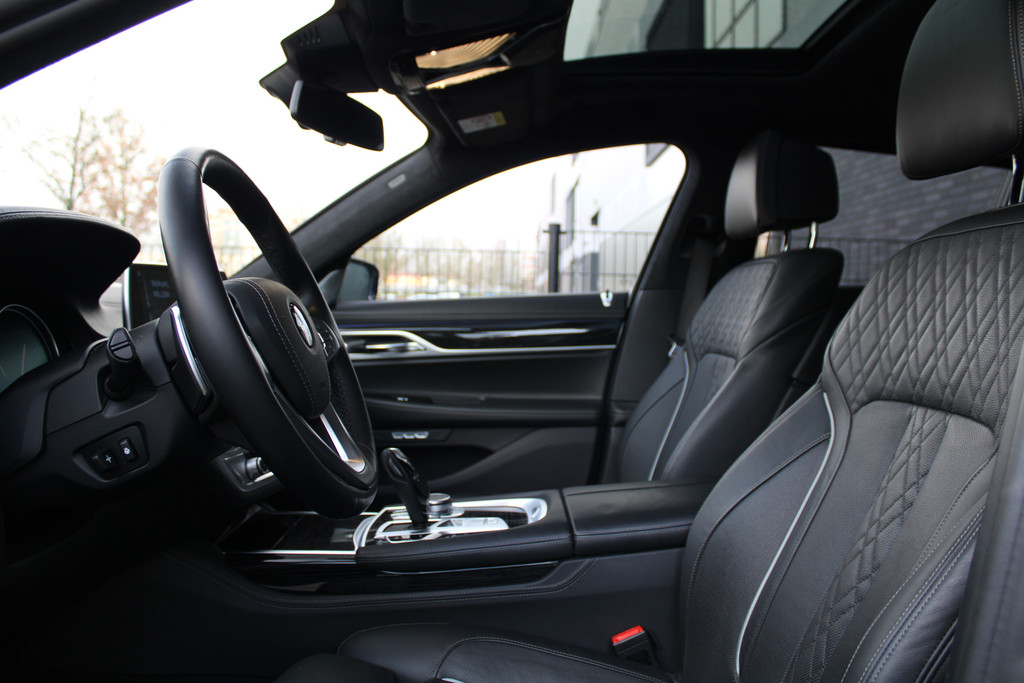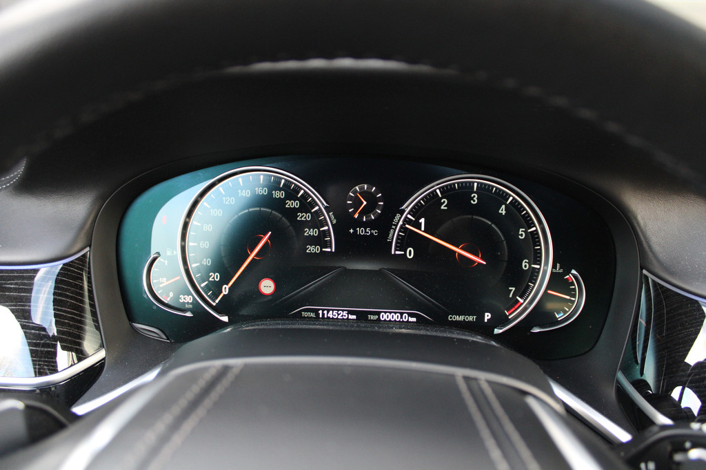Zoals u mag verwachten van deze BMW 7-serie is hij uitgerust met een reeks aan actieve veiligheidssystemen. In het instrumentarium laat de verkeersborddetectie de actuele verkeersborden zien. Het Lane-keeping systeem registreert permanent of u binnen de lijnen van de rijstrook blijft; dwaalt u onbedoeld af, dan waarschuwt het systeem en corrigeert de koers. Bovenop deze veiligheidsfeatures heeft deze BMW bovendien head-up display, dodehoekdetectie, hill hold functie en bandenspanningcontrolesysteem.