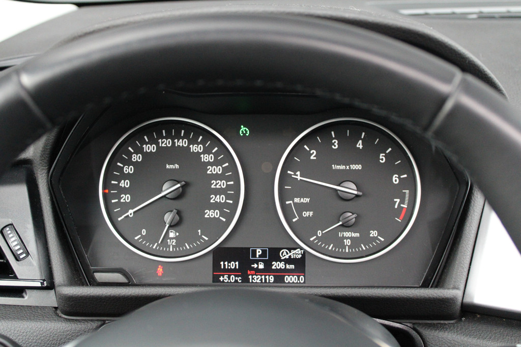 Het navigatiesysteem met harde schijf en het audio-installatiesysteem bedient u met knoppen op het stuur. Radarsensoren aan de achterkant van de auto zorgen voor een achteropkomend verkeer waarschuwing als de afstand tot het verkeer achter te klein wordt. Dankzij automatische airconditioning is het interieur behaaglijk warm of verfrissend koel. De meeste schade bij inparkeren komt van een randje of paaltje dat u even niet zag. Maar de parkeersensoren zien alles en waarschuwen op tijd. Natuurlijk is een complete auto als deze ook voorzien van sensoren die de omgeving in de gaten houden. Deze BMW heeft niet alleen een automatisch inschakelbare verlichting aan boord, maar ook een regensensor. Ook cruise control, sportstuurwiel, centrale deurvergrendeling met afstandsbediening en boordcomputer zijn aan boord.