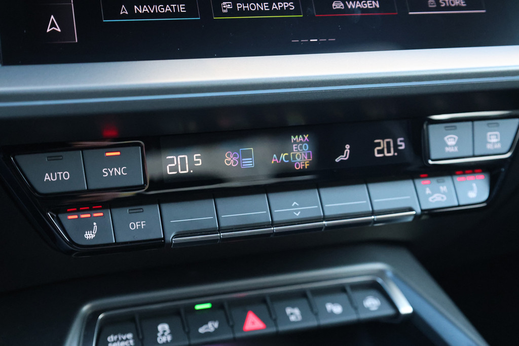 Tijdens de rit wordt u als bestuurder ondersteund door verschillende systemen die de weg en uw omgeving in de gaten houden. Verkeersbord-detectie herkent verkeersborden en toont deze op het instrumentarium van de auto. Onbedoeld buiten de rijstrook raken wordt voorkomen door het Lane-keeping systeem. Mindert een voorligger onverwachts te veel vaart, dan komt de forward collision warning in actie en waarschuwt meteen. In deze Audi vinden we verder een dodehoekdetectie, hill hold functie, brake assist, vermoeidheidsherkenning en bandenspanningcontrolesysteem.