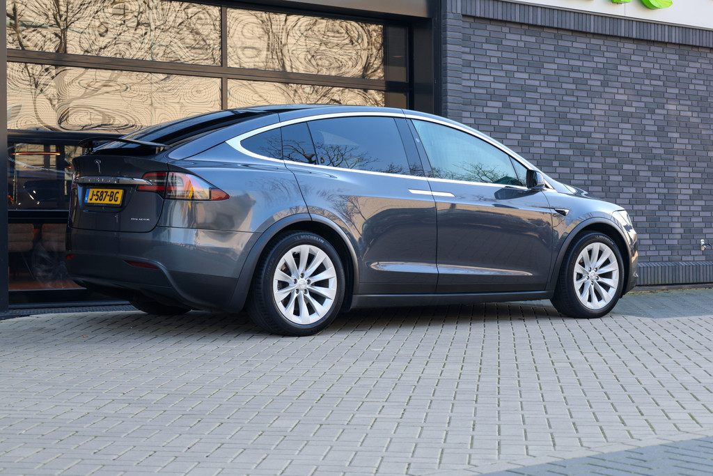 Duurzaam en dynamisch, de Tesla Model X verenigt deze twee uitersten in zich. Dit is een auto uit 2020, er staat 149747 kilometer op de teller. Met de combinatie van elektrische aandrijving en automatische transmissie manoeuvreert u soepel door het verkeer. De krachtige motor geeft deze Tesla uitstekende prestaties. De luchtvering biedt veel pluspunten, variërend van optimaal wegcontact en aerodynamica, tot en met constante rijhoogte en uitstekende demping van oneffenheden. Ook een fijne dosis klasse is bijgeleverd, met het lederen interieur. Zit u goed? De stoelen zijn eenvoudig instelbaar dankzij de elektrische bediening met geheugen. De bagageruimte is toegankelijk via een comfortverhogende elektrische achterklep. Licht en luchtpartijen: u krijgt ze bijgeleverd dankzij de panoramische voorruit. Op gure dagen is het ook achterin heerlijk bijkomen op de verwarmde achterbank. Verder is de Tesla uitgerust met: 20 inch lichtmetalen velgen, LED koplampen, LED-achterlichten en snelheidsafhankelijke stuurbekrachtiging.