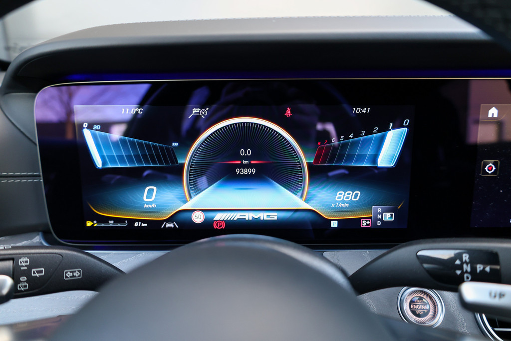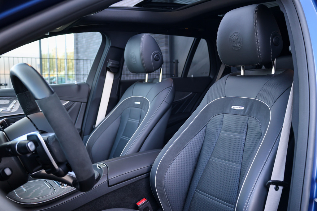 Het interieur is ook meegenomen in deze bijzondere samenstelling; het nappalederen en Alcantara AMG stuur, de AMG vloermatten en de zilveren gordels geeft het geheel een sportieve en luxe uitstraling die perfect aansluit bij het exclusieve karakter van deze uitvoering. Het Burmester soundsysteem en de uitgebreide uitrusting maken elke rit comfortabel en compleet.