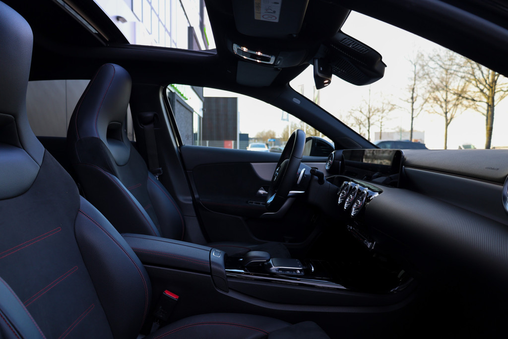 Van een auto mag u het nodige verwachten, vinden ze bij Mercedes. Topkwaliteit in alle opzichten, vandaar de slogan 'The best or nothing'. Hier ziet u een perfect voorbeeld. Als u het over uitstraling hebt, dan kunt u niet om het effect van de AMG-styling heen. Onder de motorkap ligt een zuinige viercilinder benzinemotor. Neem plaats op de comfortabele stoelen. Dankzij de elektrische bediening en het geheugen is het eenvoudig om hierin de beste zitpositie te vinden. Een heerlijk zonnetje, of indrukwekkende wolkenpartijen? Bekijk ze onbelemmerd door het elektrisch bediende glazen panoramadak. De verlichting van de koplampen geeft het gevoel dat het altijd dag is. De slimme matrix LED-technologie past zich aan bij tegenliggers, zonder verlies van lichtkwaliteit. U wordt in deze auto ook getrakteerd op 17 inch lichtmetalen velgen, AMG-styling, zwarte hemelbekleding, donker getint glas achter, in delen neerklapbare achterbank en verstelbare lendensteunen.