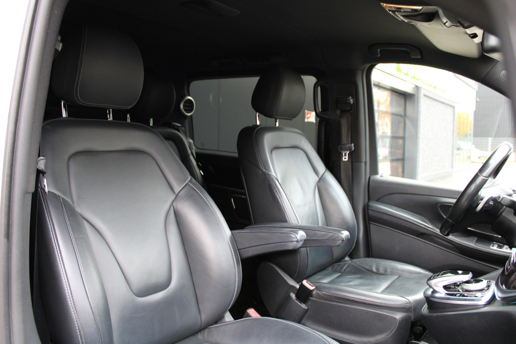Of u nu stadsritten maakt of langdurig op snelwegen bent, het rijden met de Mercedes-Benz V-klasse is steeds een genoegen. Het onderstel biedt comfort en sportiviteit, het interieur is ruim en weldadig en deze auto heeft alle systemen aan boord om uw ritten zo veilig mogelijk te maken. Met zijn dieselmotor en automatische transmissie is dit een prima auto voor nog vele kilometers. U wilt comfort? Die is er, met het lederen interieur. U wilt gemak? Kijk dan even naar de elektrisch bedienbare achterklep. Ga samen met uw bijrijder lekker zitten in de verwarmbare voorstoelen. Een goede zithouding is wel zo prettig. Daarom is deze auto voorzien van comfortstoelen. Achterportieren kunnen gemakkelijk beschadigd raken als ze bijvoorbeeld door de wind bij uitstappen openslaan. Dat zal niet gebeuren met de aanwezige schuifdeur achter. U wordt in deze auto ook getrakteerd op 18 inch lichtmetalen velgen, LED koplampen, sportonderstel en warmtewerend glas.